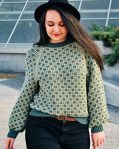 This unisex, lightweight sweater features textured stitches that make it stand out without being over the top. It’s worked from the top down for easy fitting. See the pattern