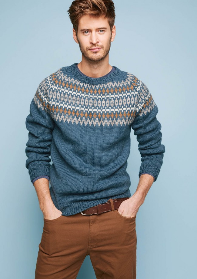 Tema 58- Nr 7 – Men’s sweater knit in PEER GYNT. Price includes Tema 58 Catalog