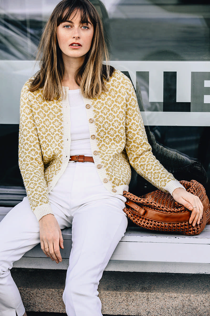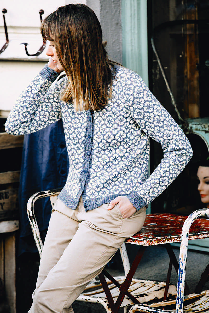 This is one of our favorite cardigans and we’re happy to share this pattern with everyone! The Flower Cardigan is knitted in SISU and it looks just as beautiful with a light base color as with a darker base color.