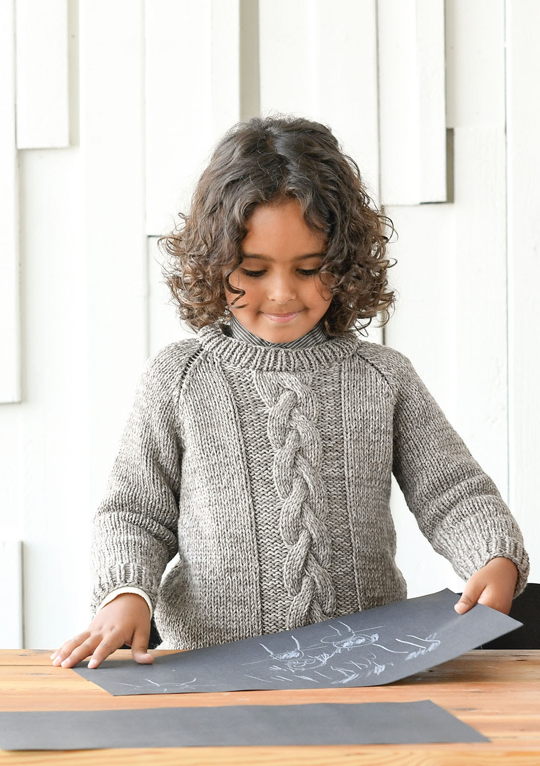 From Sandnes Garn 1615, the Fresko sweater has a cable and is knit in DUO and TYNN MERINOULL