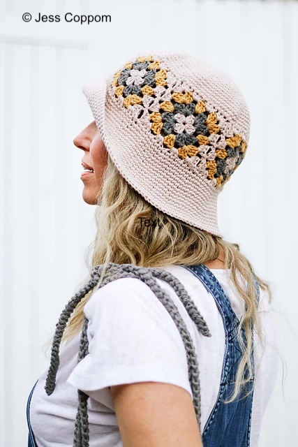 In this pattern, you’ll get to practice crocheting a traditional granny square motif, join as-you-go crochet techniques to seam the squares and then some simple increasing to make the top and brim of the bucket hat. Use the most retro colors you can find or stick to one solid color throughout for a more streamlined look.