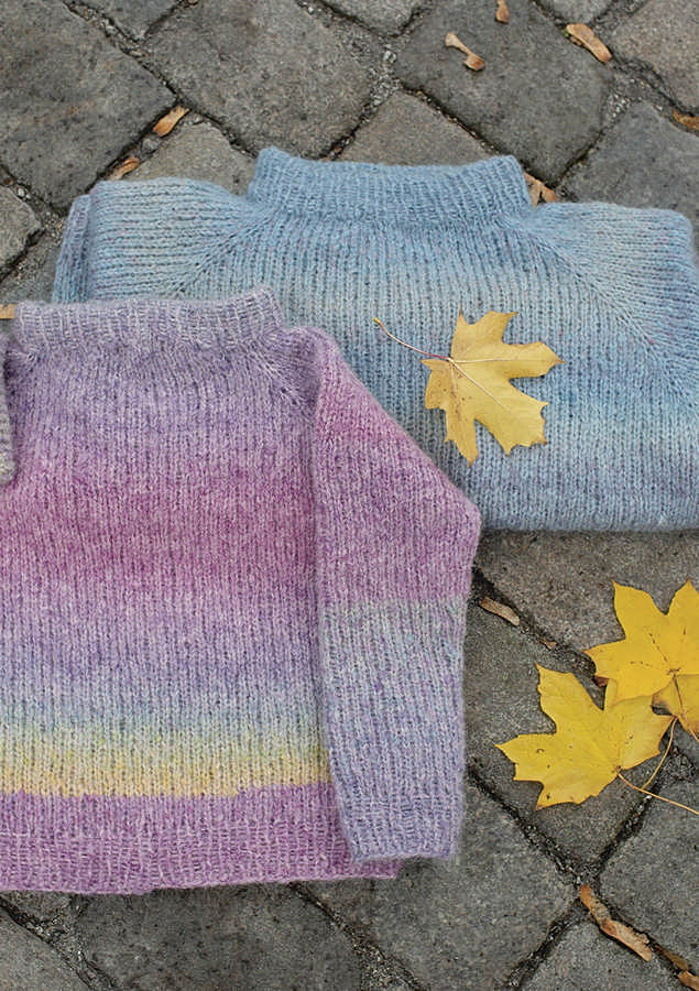 We have made recipes for basic raglan sweaters that anyone can knit. Choose your favorite color and knit for yourself or the kids. The kid’s pattern is suitable for girls or boys!